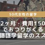 50代女性の留学は、「期間2ヶ月で費用150万円でおつりがくる」っていう、私のオリジナルなパターンをお勧めしてるよ。